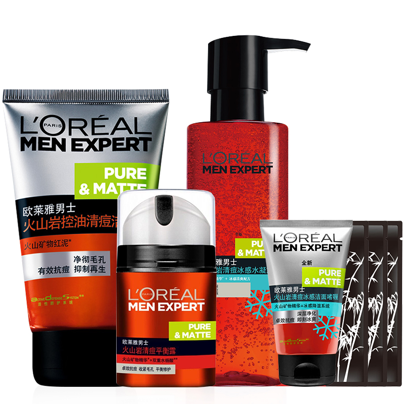 欧莱雅男士化妆护肤品套装火山岩洗面奶控油祛痘去黑头收缩毛孔
