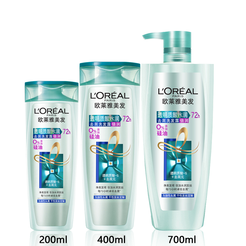 产地:中国 品牌:L'oreal/欧莱雅 L’oreal/欧莱雅单品:透明质酸水润去屑洗发露(倍润) 规格类型:正常规格 化妆品净含量:200mL 400mL 700mL 是否为特殊用途化妆品:否 功效:头皮控油 滋润 查看全文