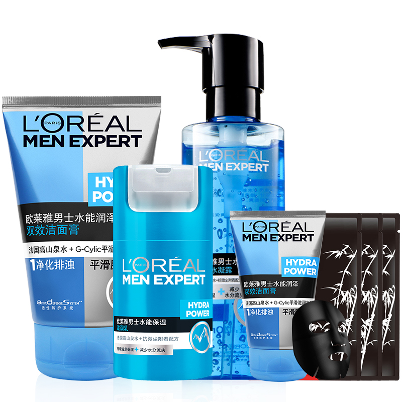 欧莱雅男士水能保湿化妆护肤品套装春夏深层补水洗面奶爽肤水乳液