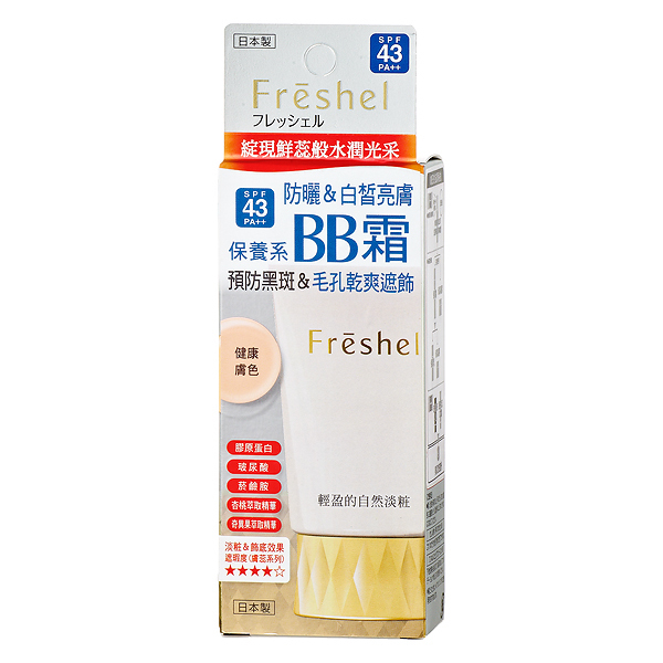 限期使用日期范围:2018-01-01至2018-12-31 颜色分类:粉红色 规格类型:正常规格 品牌:Freshel 品名:美肌净透BB霜(极润) 功效:修饰肤色 产地:日本 查看全文