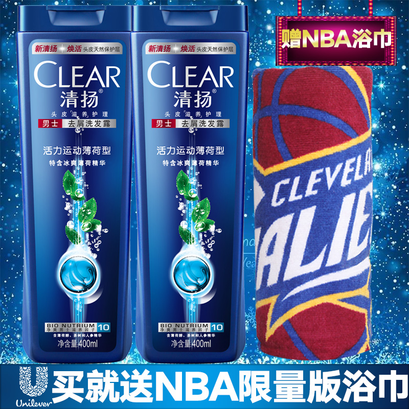 清扬正品活力运动薄荷型去屑洗发水男士洗发露控油止痒送NBA浴巾