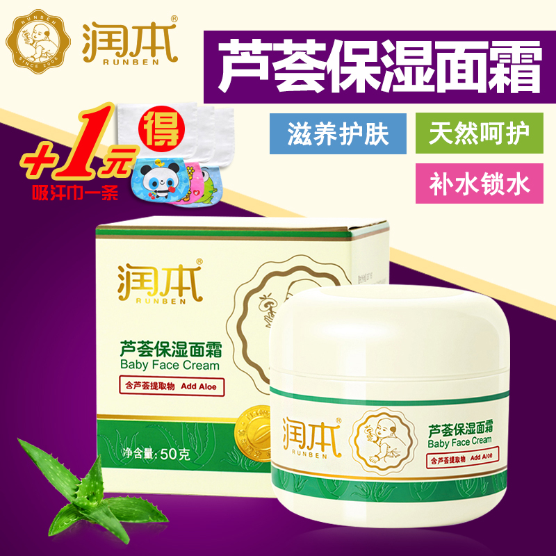 润本芦荟保湿面霜婴儿润肤霜补水宝宝润肤乳儿童护肤防皴面霜50g