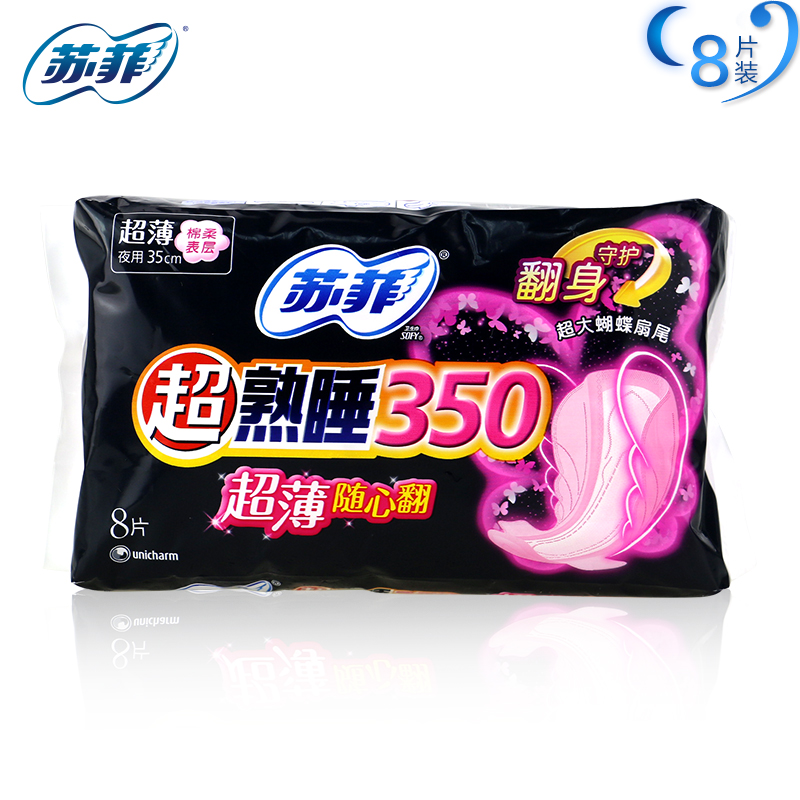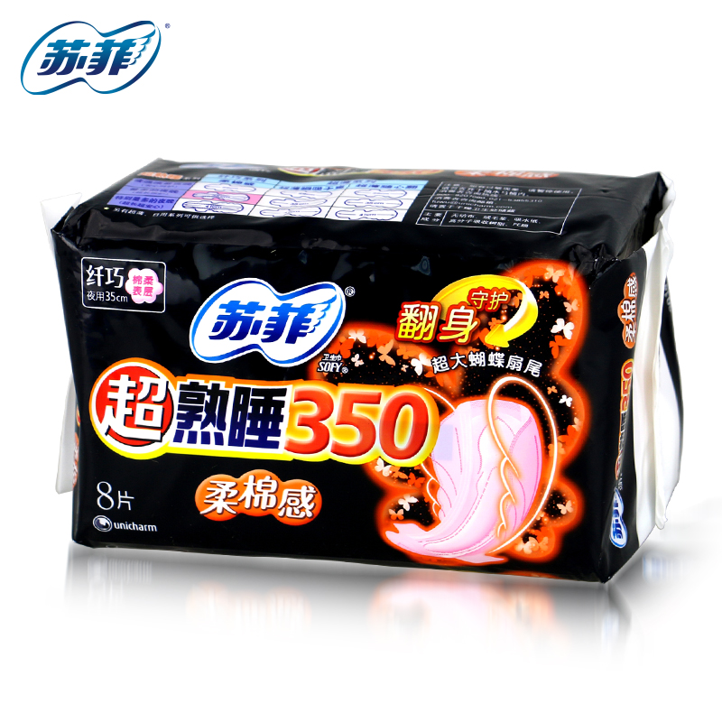 SOFY/苏菲卫生巾超熟睡350mm弹力贴身纤巧柔棉感防漏8片蝴蝶扇尾