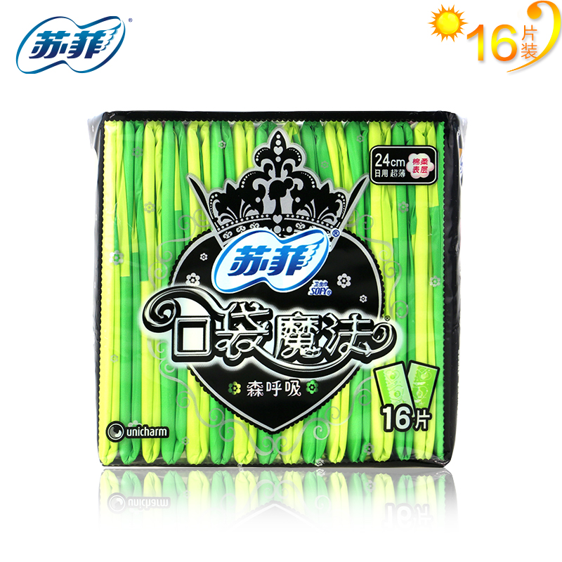 的热门产品SOFY/苏菲卫生巾 口袋魔法森呼吸240mm16片 双色掌心包