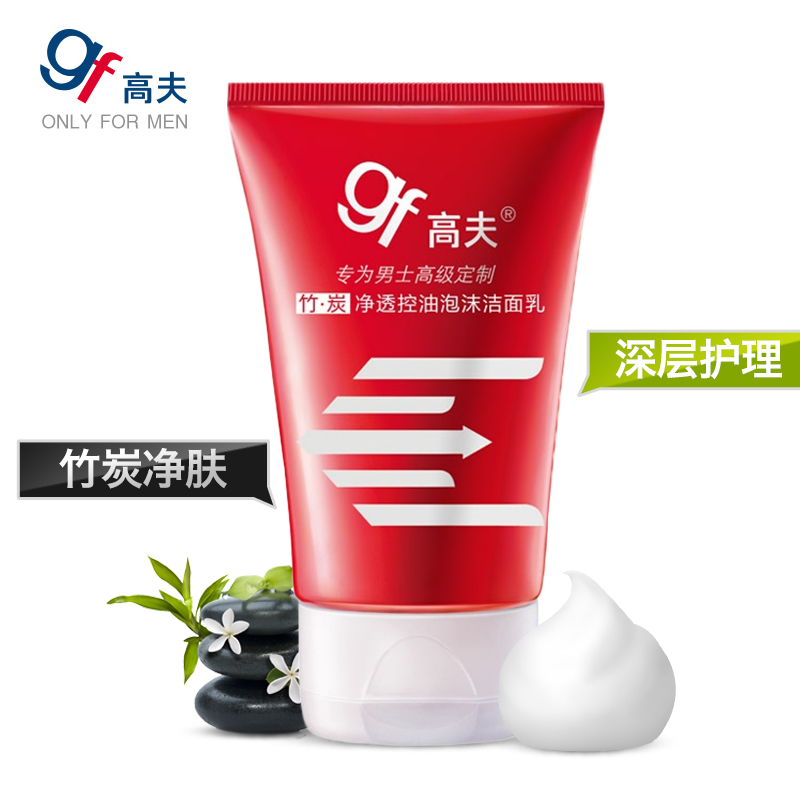 gf高夫竹炭净透控油泡沫洁面乳100g男士洗面奶套装去黑头深层清洁
