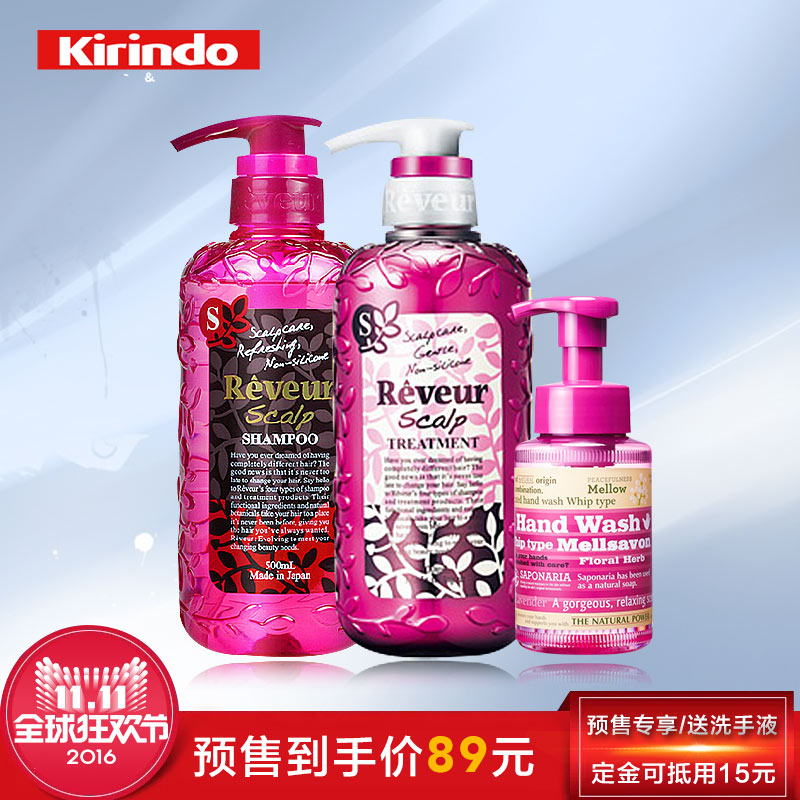 日本进口Reveur无硅头皮护理型洗发水护发素500ml*2+洗手液250ml
