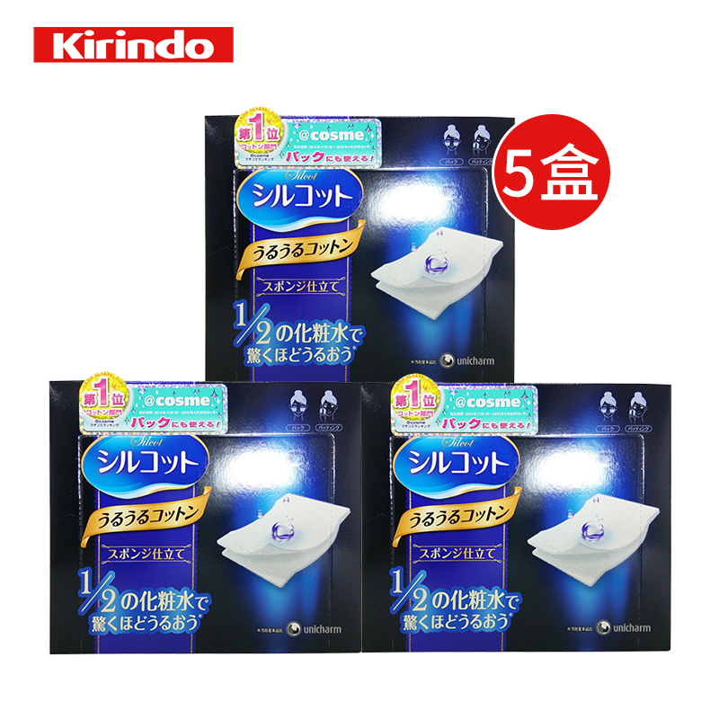 的热门产品日本进口尤妮佳保湿纯棉亲肤卸妆棉40片*5化妆棉省水保湿绵柔包邮