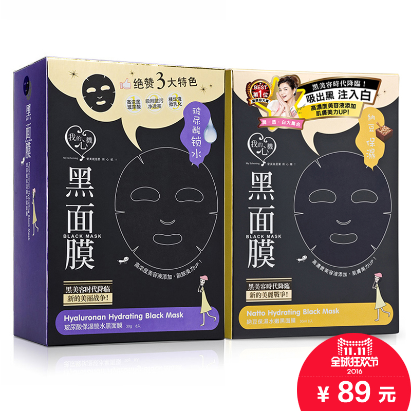 台湾 我的心机黑面膜玻尿酸保湿锁水+纳豆保湿水嫩组合 8片/盒*2
