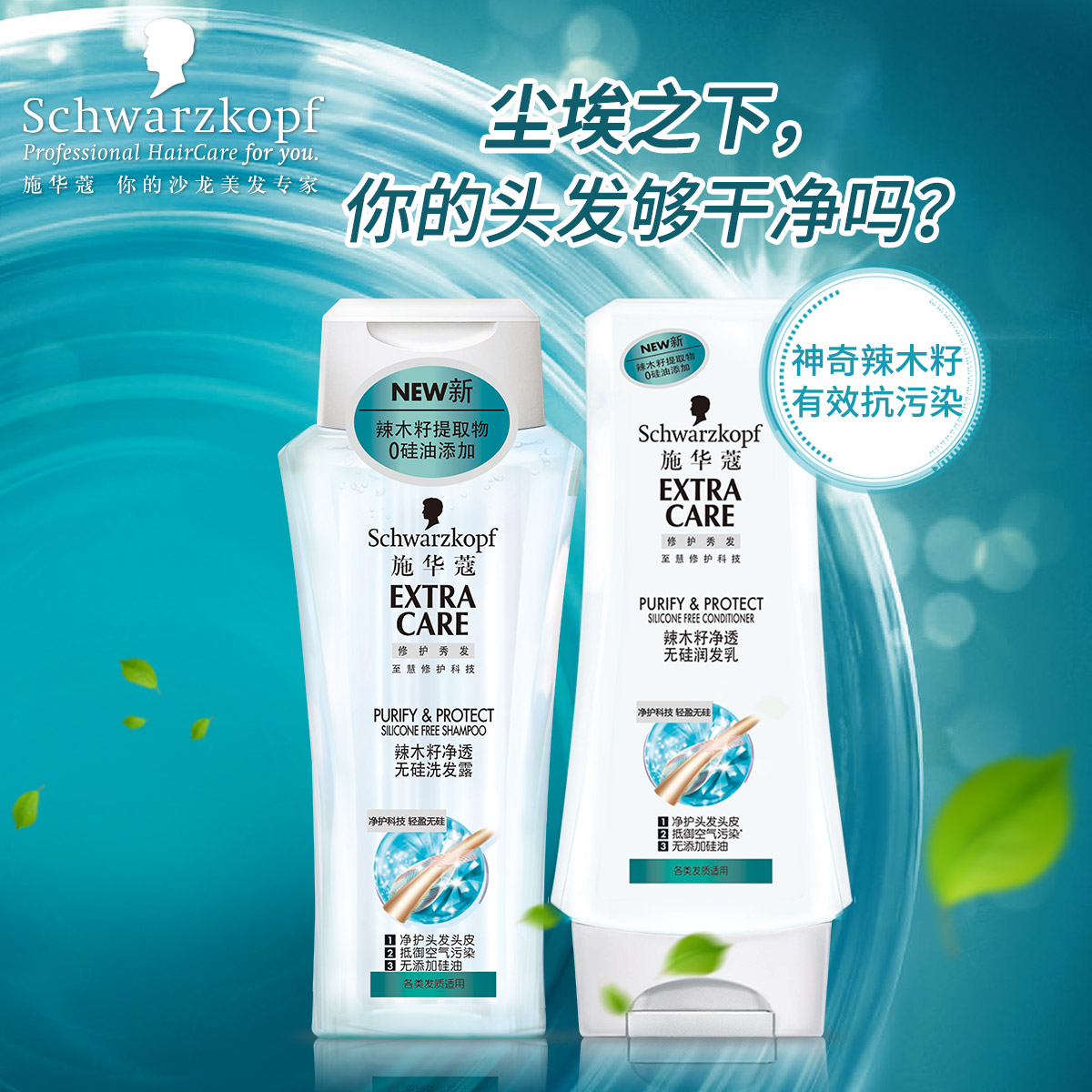 施华蔻辣木籽净透无硅洗发水护发素600ml洗护套装 瞬间洁净,防霾