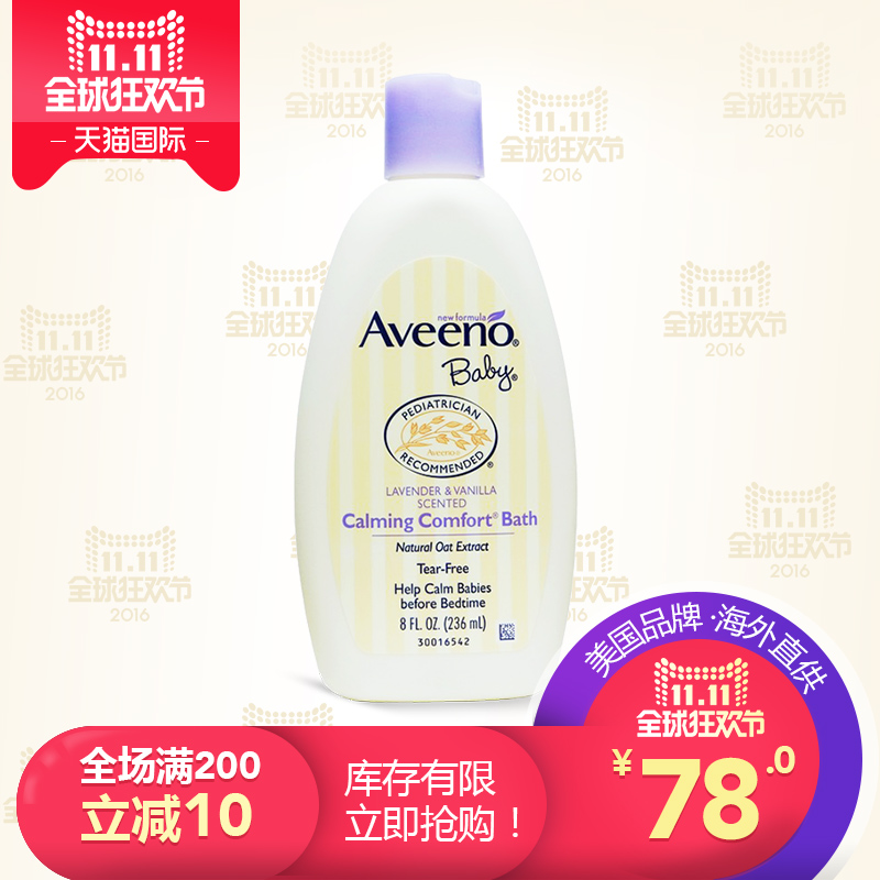美国进口Aveeno艾维诺婴儿天然薰衣草舒缓镇静沐浴露236ml