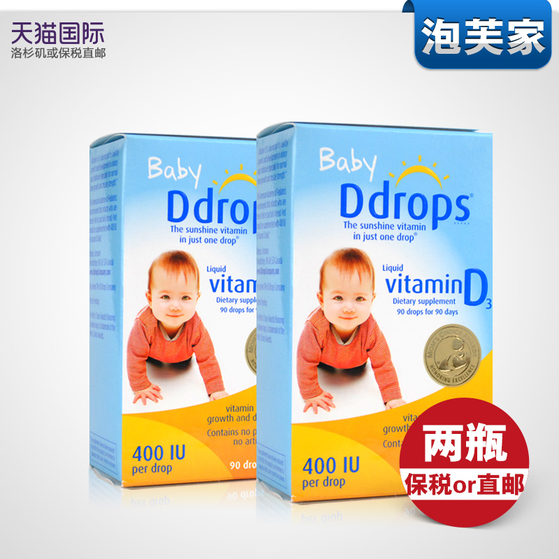 【2瓶】进口婴儿维生素d3滴剂 美国baby ddrops D3 400IU 90滴