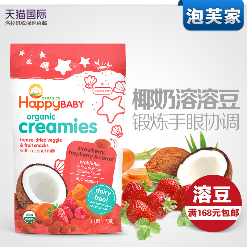 美国进口禧贝Happybaby婴幼儿零食椰奶胡萝卜草莓宝宝溶溶豆 28g