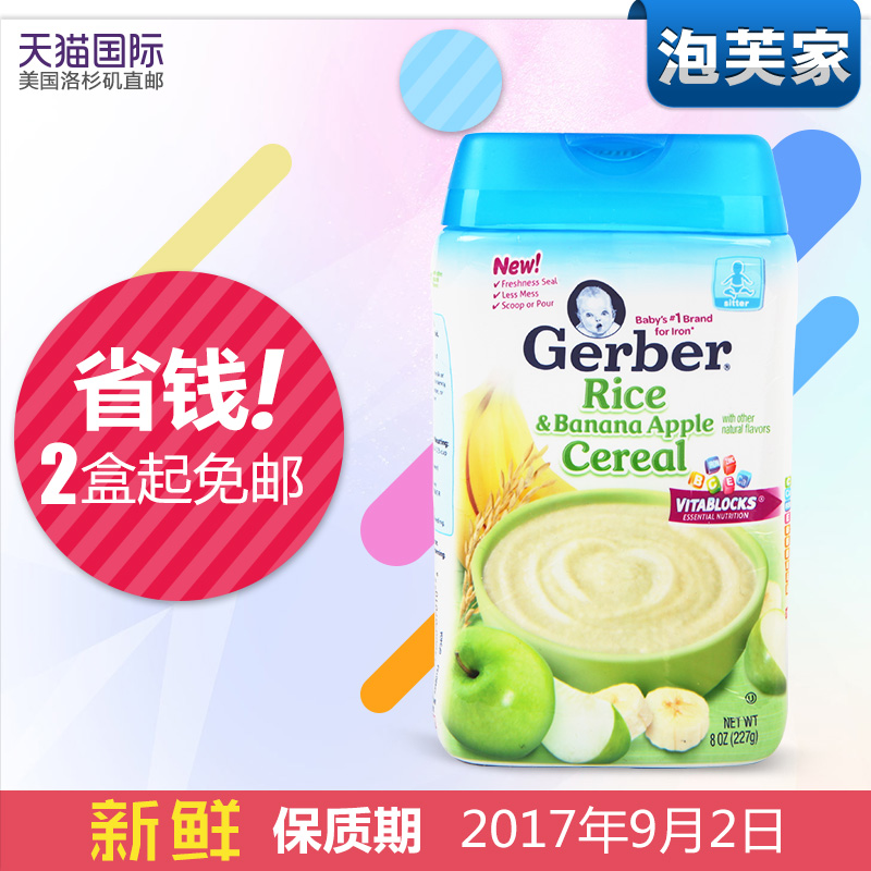 美国进口 gerber嘉宝米粉2段水果大米米粉 婴儿辅食宝宝米糊食品