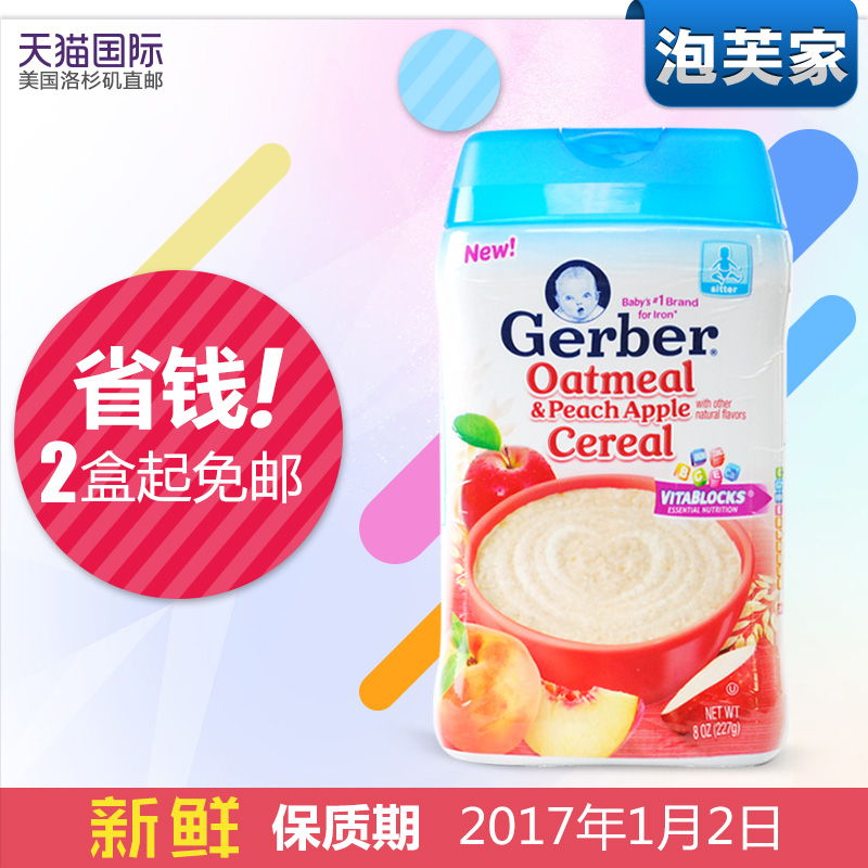 美国gerber嘉宝米粉2段苹果蜜桃燕麦米粉婴儿辅食宝宝米糊