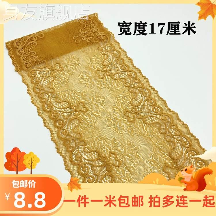 外单姜黄宽弹力蕾丝花边辅料手工接裙摆袖子衣服装饰加长宽17cm
