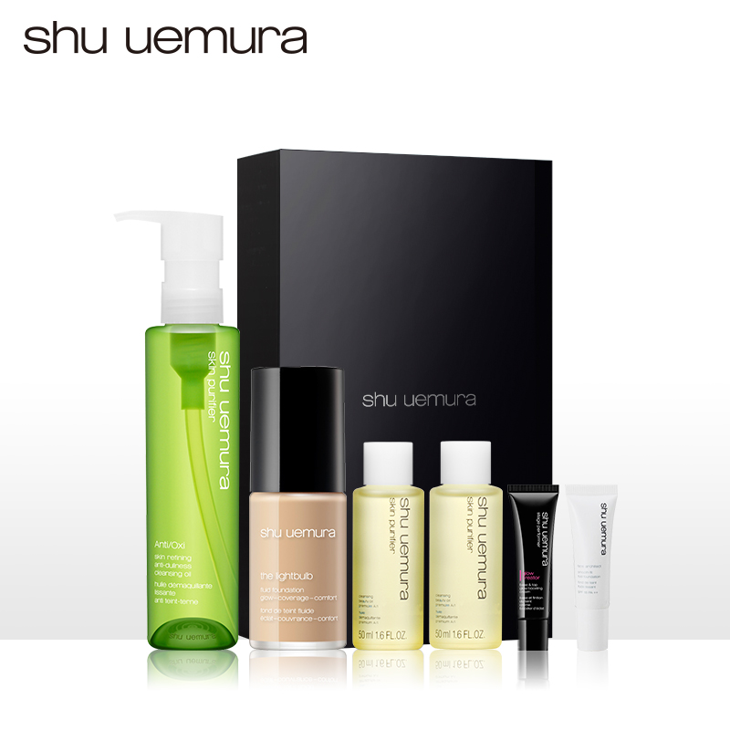 Shu uemura植村秀光感美肌套组 小灯泡粉底液/绿茶洁颜油