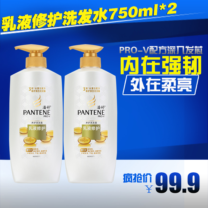 宝洁正品 潘婷乳液修护洗发露750ml 2瓶优惠装 所有发质通用