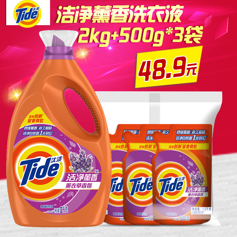 汰渍薰衣草洗衣液洁净薰香2kg+500g*3袋装清洁贴身内衣