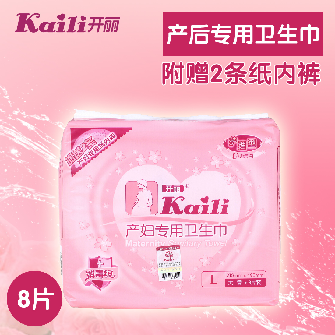的热门产品开丽产妇专用卫生巾护理型8片装 KC2008 待产护垫巾 赠2条纸内裤