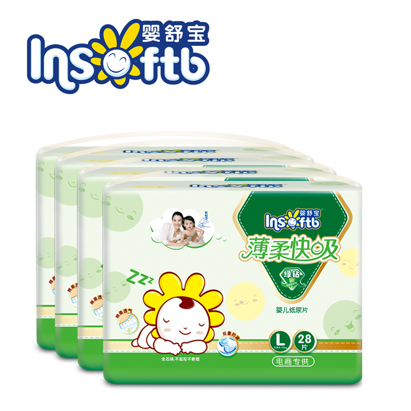 产地:中国大陆 适用性别:通用 尿片规格型号:L 包装数量(片):112 尿不湿品类:纸尿片 适合体重:8KG-13KG 品牌:Insoftb/婴舒宝 系列:绿钻薄柔快吸 规格:L28片4包组合 尿片规格:L28片4包组合 查看全文