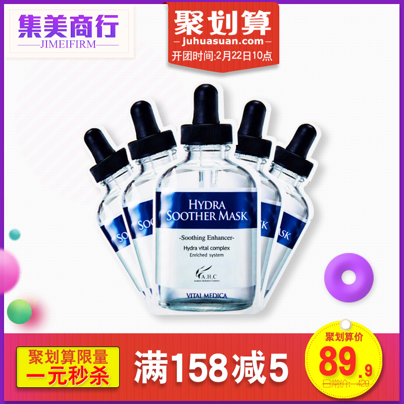 韩国AHC面膜高浓度B5玻尿酸精华液面膜贴5片高效补水保湿美白修复