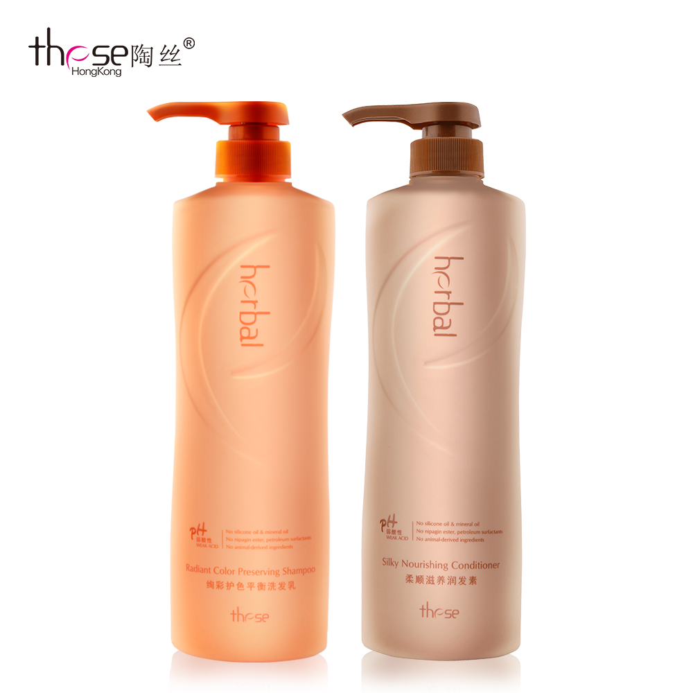 陶丝herbal无硅油绚彩护色洗发水柔顺滋养护发素洗护套装650ml*2