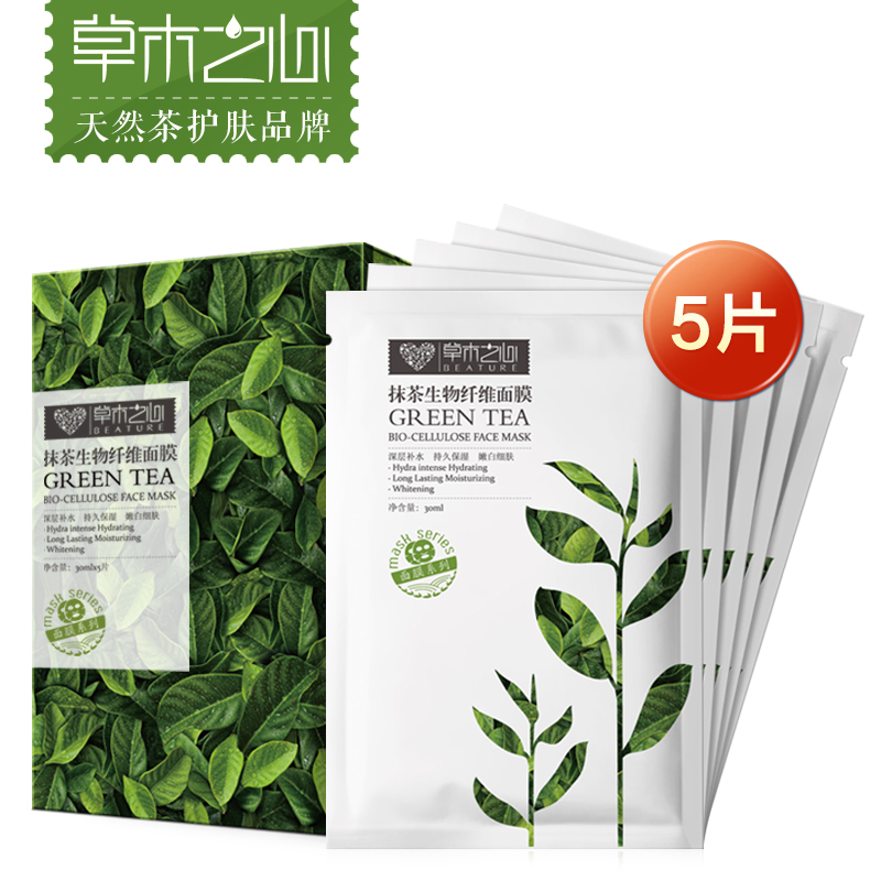 草木之心抹茶控油补水保湿面膜深层清洁收缩毛孔生物纤维面膜正品