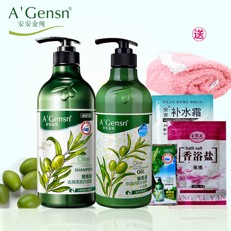 安安金纯橄榄油去屑洗发水补水沐浴露套装沐浴乳男女750g+750g