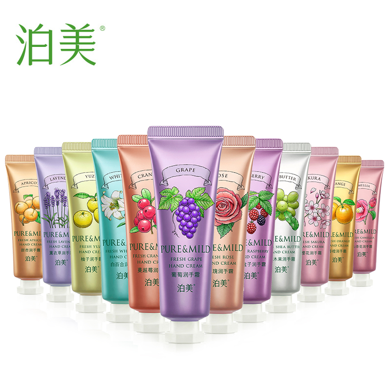 化妆品保质期:36 限期使用日期范围:2019-01-01至2019-01-02 颜色分类:柚子 樱花 覆盆子 薰衣草 白百合 玫瑰 蔓越莓 葡萄 山茶花 乳木果 香橙 甜杏 鲜果馥郁 樱花盈舞 鲜果芬芳 功效:补水 保湿 滋润 规格类型:正常规格 品牌:PURE&MILD/泊美 面部护理套装:润手霜 产地:中国 查看全文
