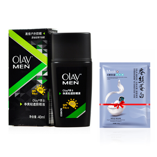 玉兰油 男士 净爽唤肤轻透防晒液40ml军训控油SPF30防晒霜送面膜