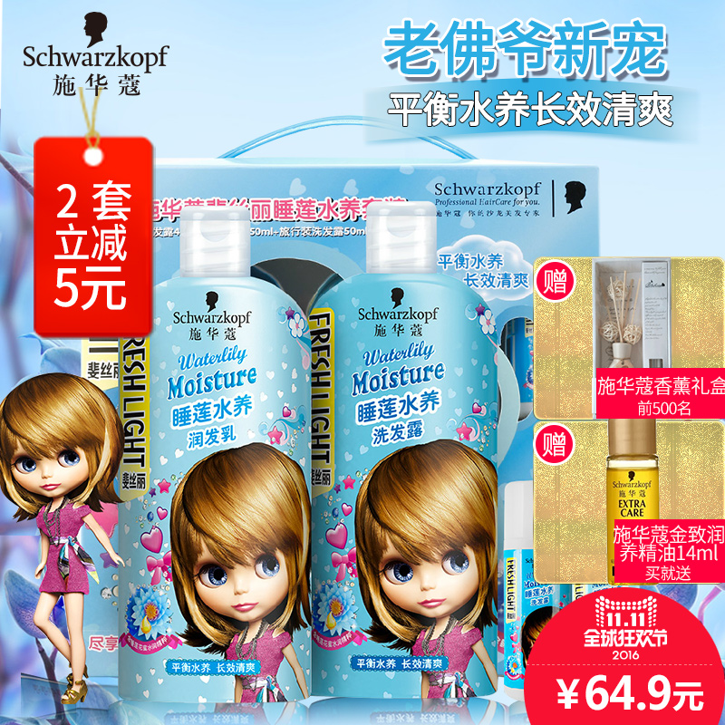 的热门产品施华蔻 斐丝丽睡莲水养洗发露护发素洗护套装450ml*2 烫染专用