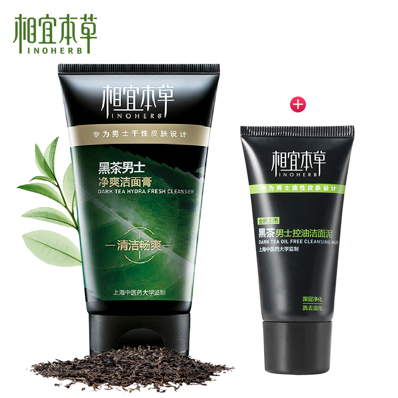 相宜本草黑茶男士净爽洁面膏 控油补水保湿去暗沉洗面奶
