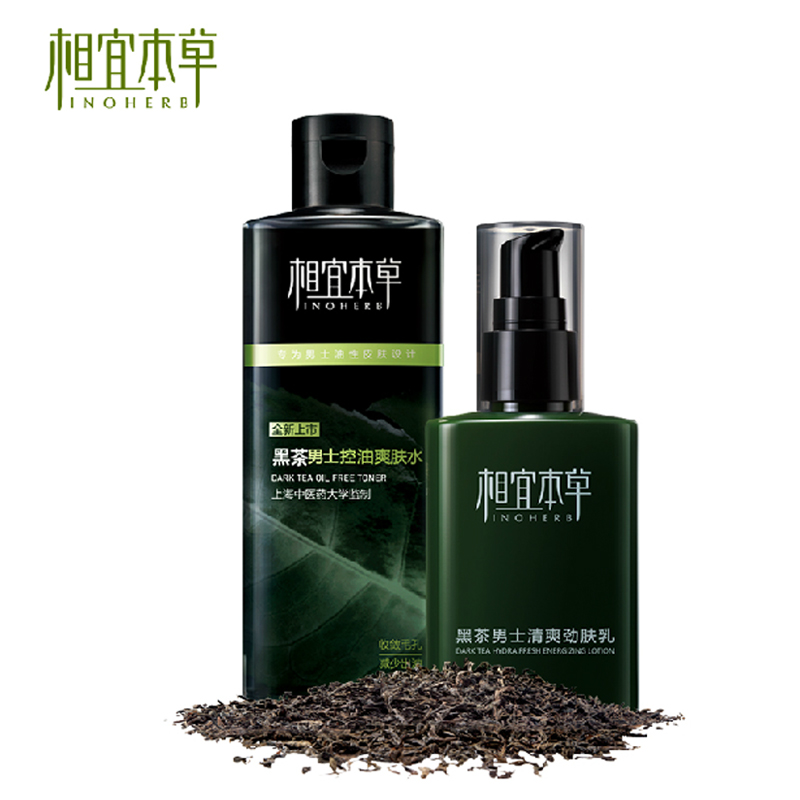 护肤专柜相宜本草黑茶男士套装 爽肤水乳液控油保湿补水