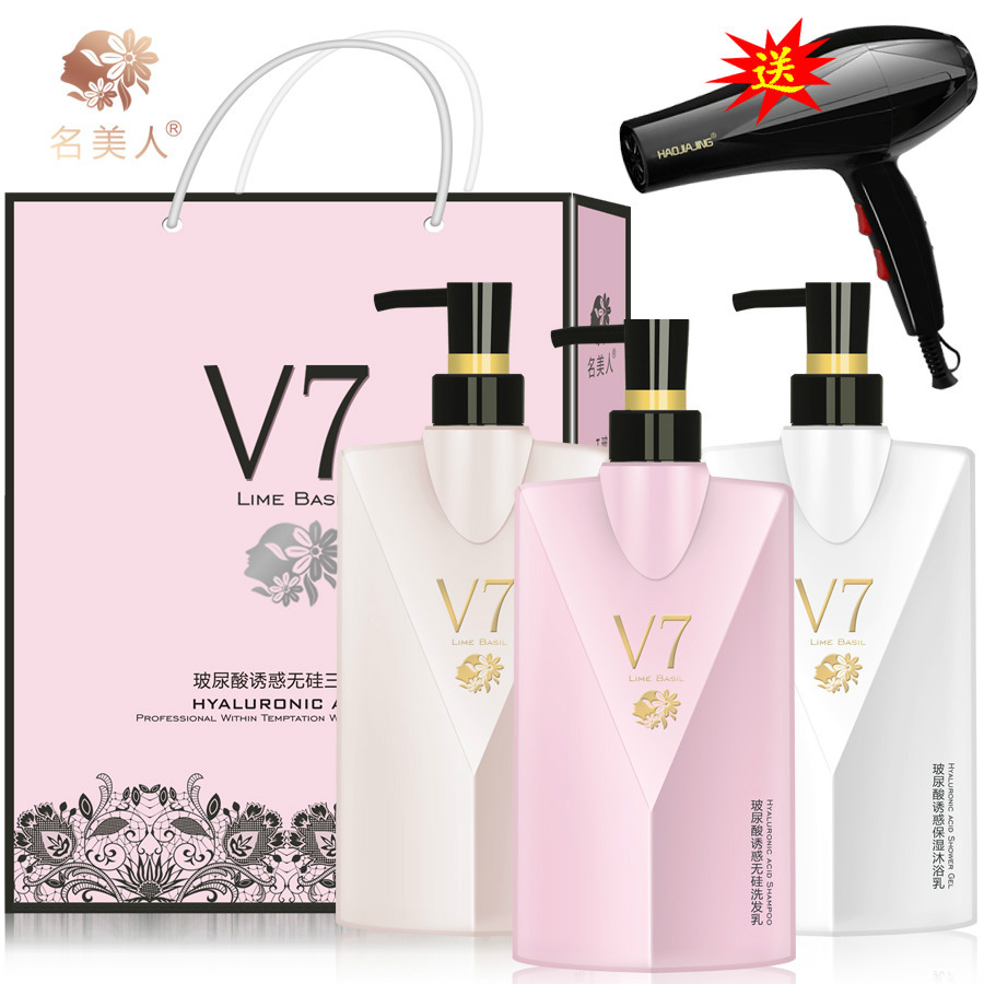玻尿酸洗发水控油去屑保湿沐浴露护发素套装洗护男女送吹风机一个