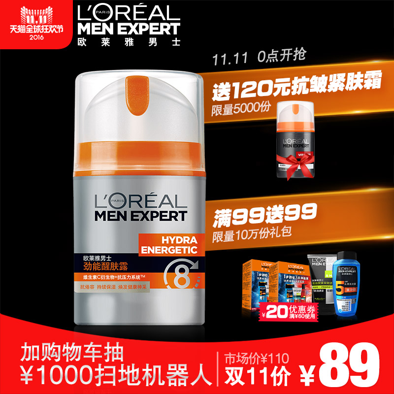 的热门产品【双11】欧莱雅欧莱雅男士劲能醒肤露8重功效50ml 补水保湿面霜