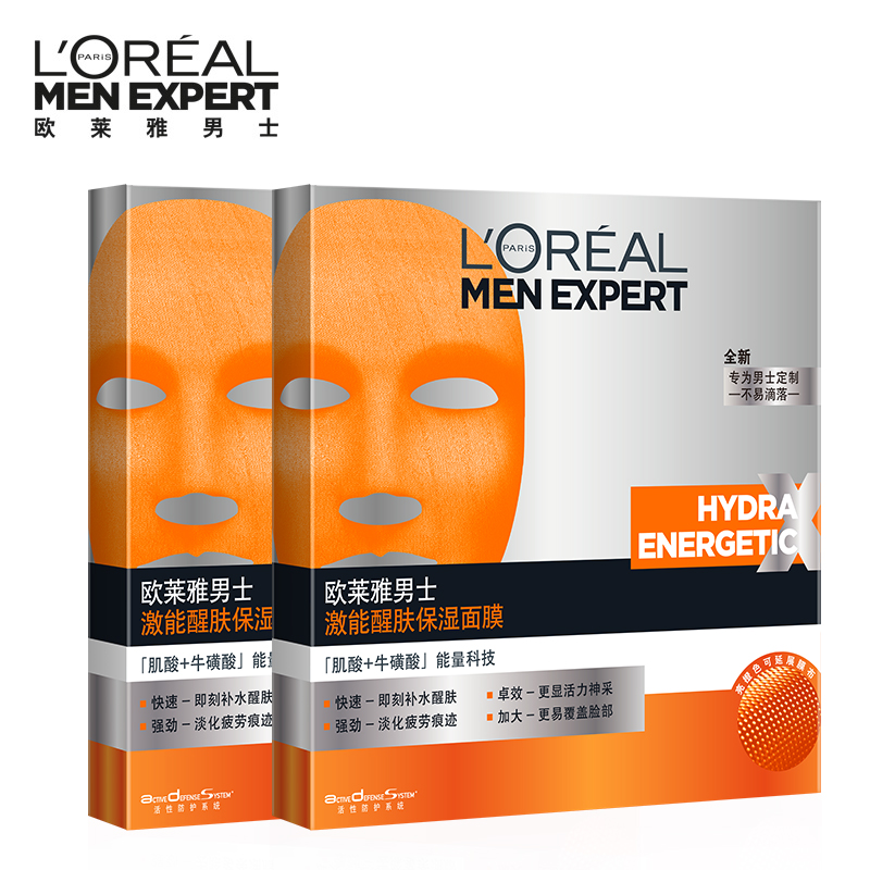 L'OREAL 欧莱雅欧莱雅男士保湿激能醒肤面膜2盒10片补水抗倦容