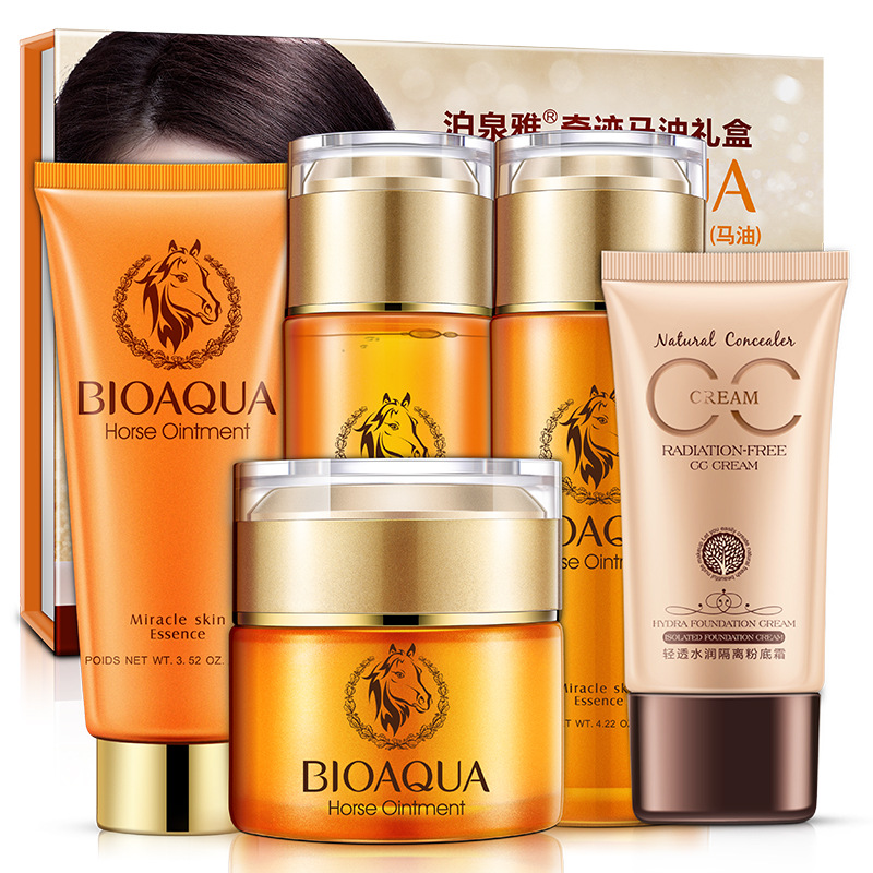 泊泉雅马油护肤品套装5件套 补水保湿收缩毛孔化妆品套盒礼盒