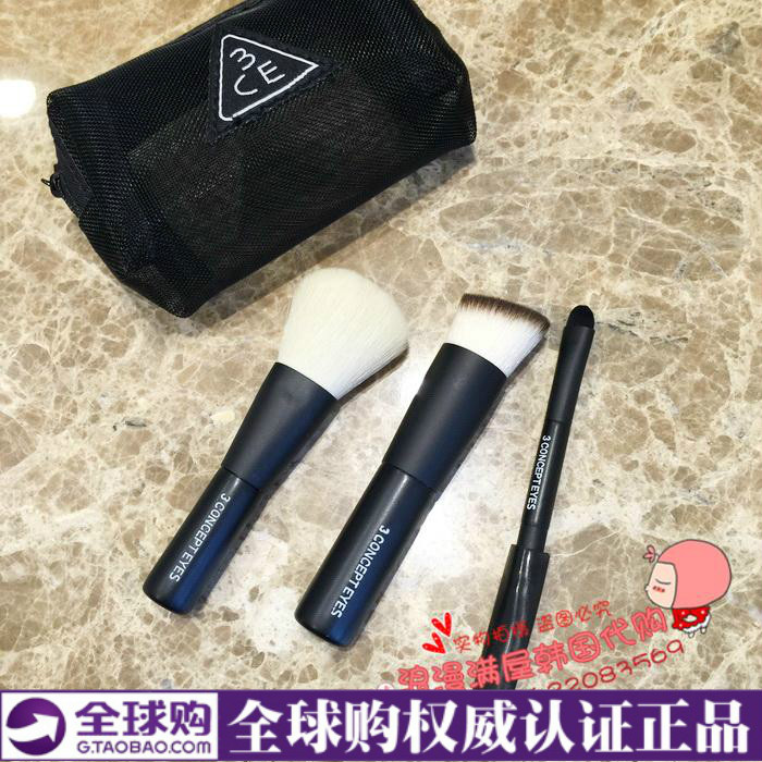 韩国正品 3CE化妆刷 套装 粉饼散粉高光腮红眼影口红迷你毛刷子