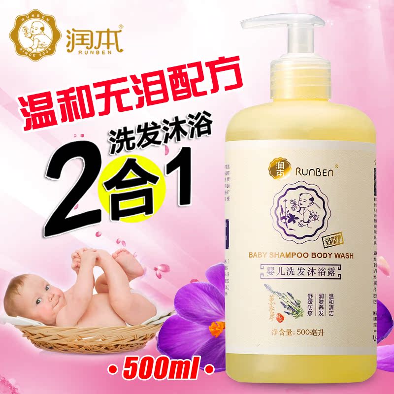 润本 婴儿洗发沐浴露二合一 宝宝洗发水沐浴 薰衣草500ml无泪配方