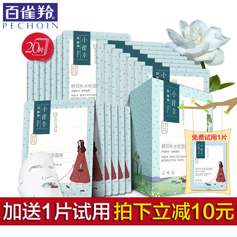 百雀羚小雀幸静润补水保湿面膜 草本滋润精华海藻蚕丝面膜贴 10片