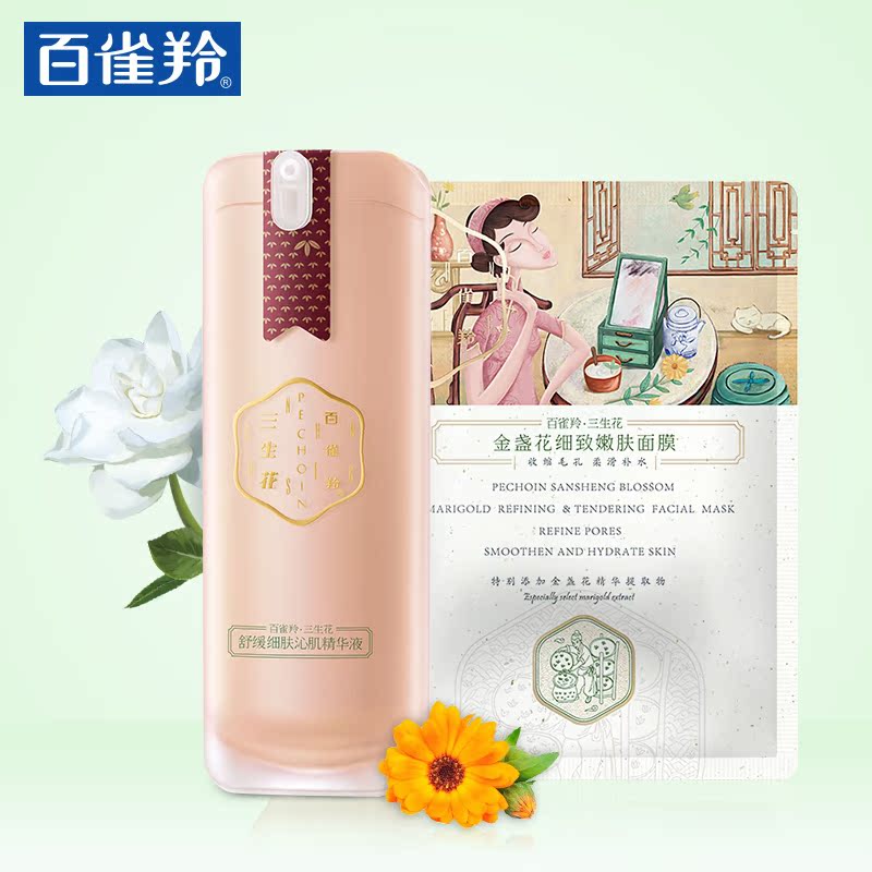 百雀羚三生花舒缓细肤沁肌精华液30ml 面部精华补水保湿专柜正品