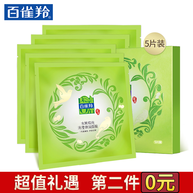 的热门产品百雀羚水嫩精纯清滢弹润面膜女 5片装 补水保湿提亮肤色收缩毛孔