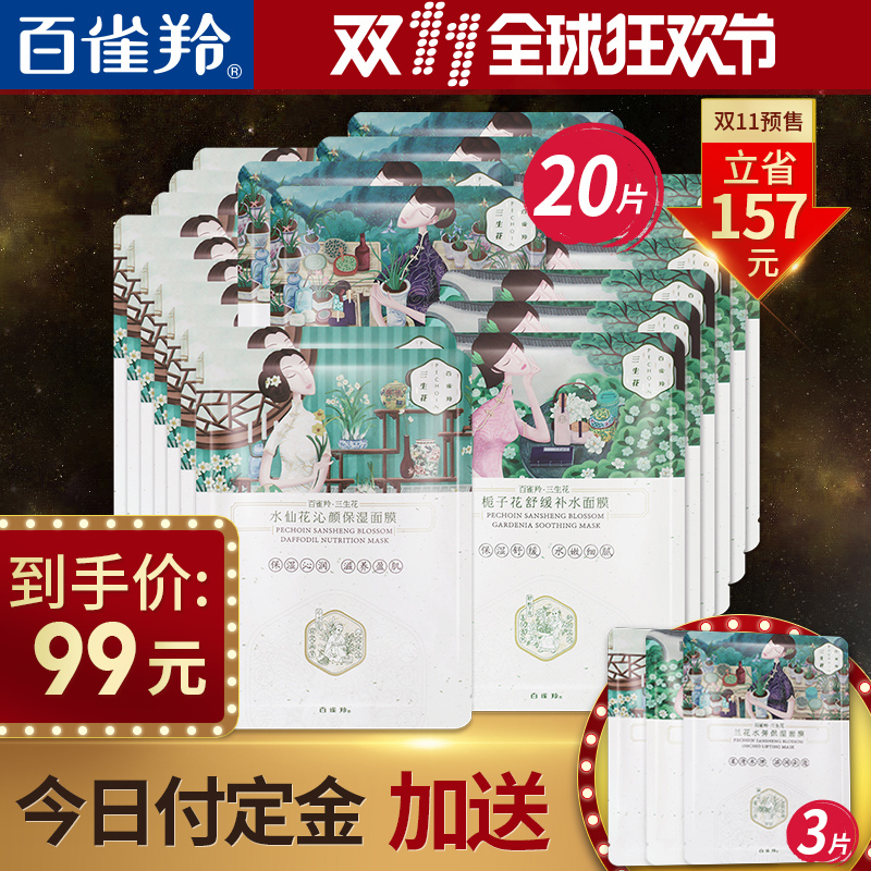【11预售】百雀羚三生花花酿精研补水面膜20片冬季女补水保湿滋润