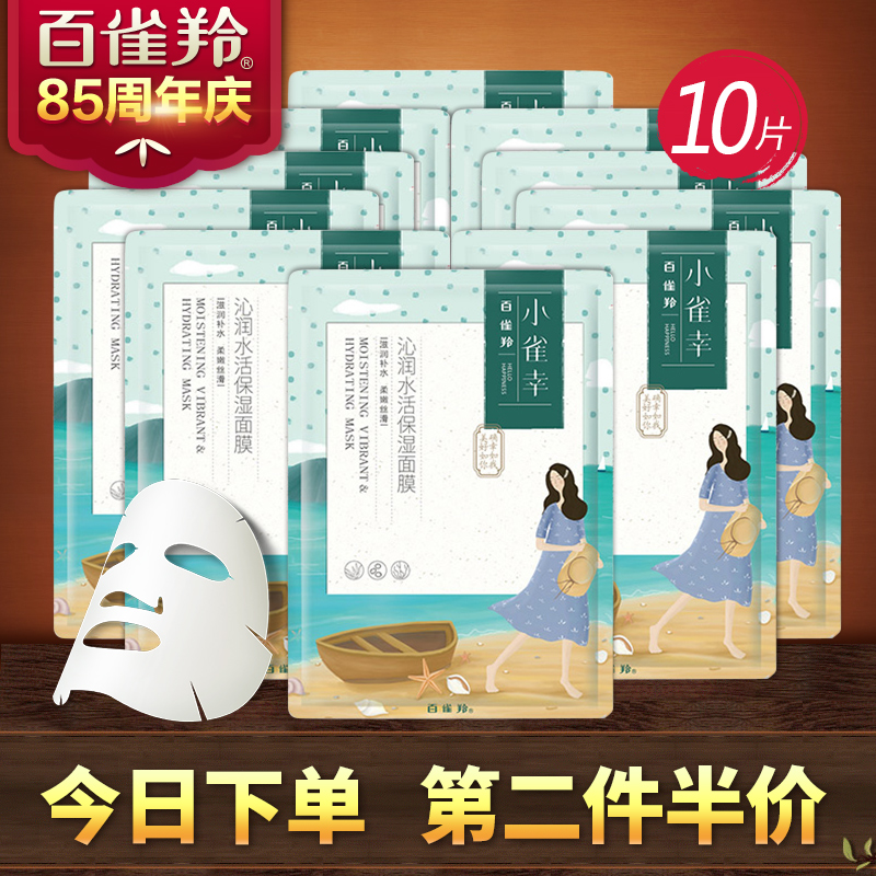 百雀羚小雀幸沁润水活保湿面膜女滋润补水蚕丝面膜贴收缩毛孔10片