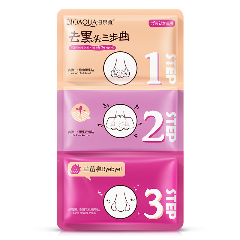 泊泉雅猪鼻子去黑头三部曲鼻贴鼻膜粉刺收缩毛孔男女护肤3片装