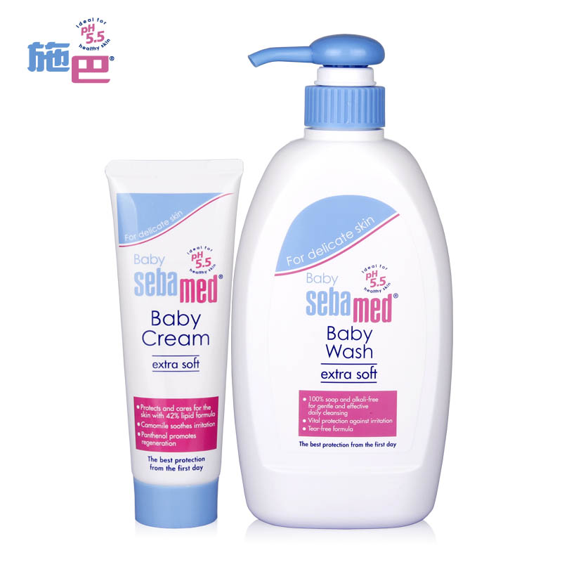 进口德国Sebamea施巴婴儿洁肤浴露400ml婴儿护肤霜面霜50ml