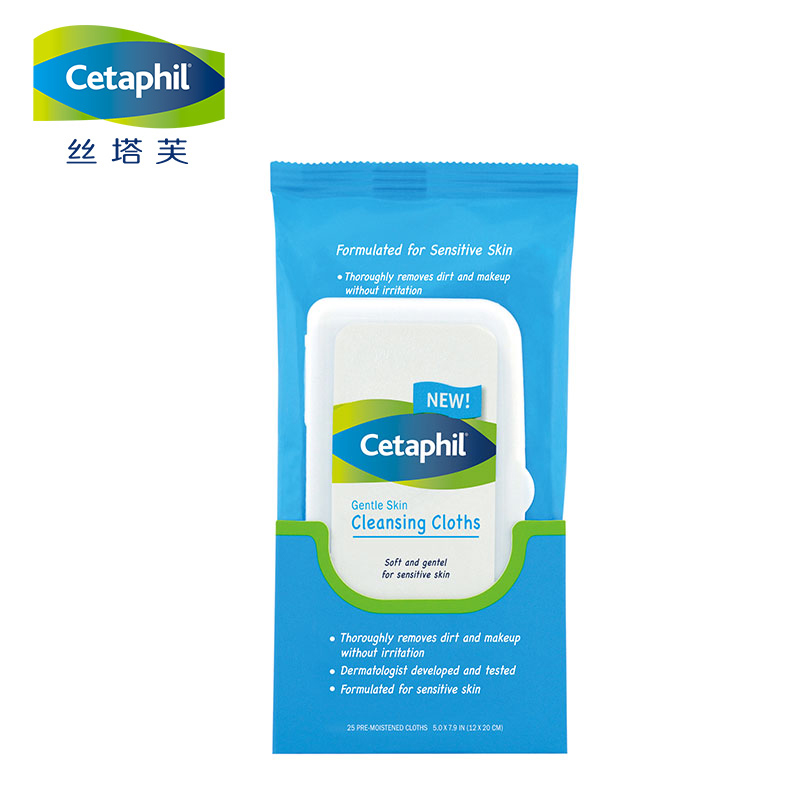 Cetaphil/丝塔芙温和洁肤柔湿巾25片/包 美国进口卸妆湿巾旅行装