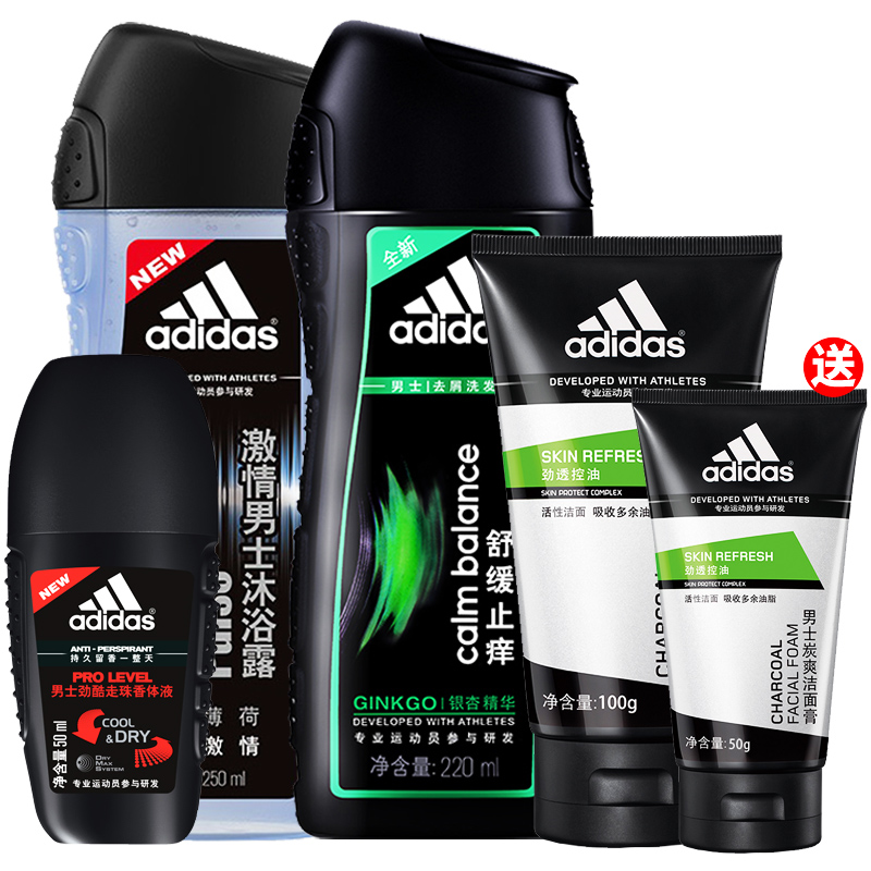阿迪达斯男士沐浴露洗发水洗面奶止汗走珠套装 控油补水保湿包邮