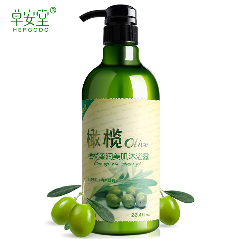 草安堂橄榄柔润美肌沐浴露750ml 滋润保湿男女家庭通用香水沐浴乳