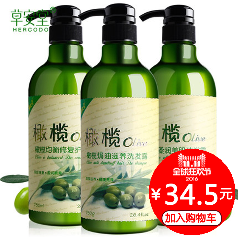 草安堂橄榄洗发水750g+沐浴露750g+护发素750ml